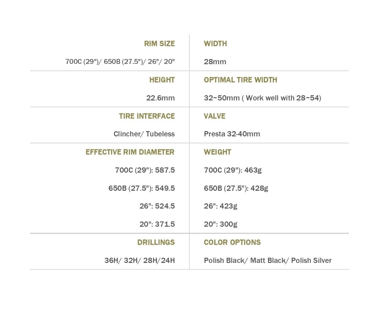 The ROLLCii GRA23 aluminum rim is a great choice for custom-built wheels, whether you're riding a 700c or 650b gravel bike, a 29" or 27.5" light-duty mountain bike, or bringing a vintage 26-inch MTB back to life.