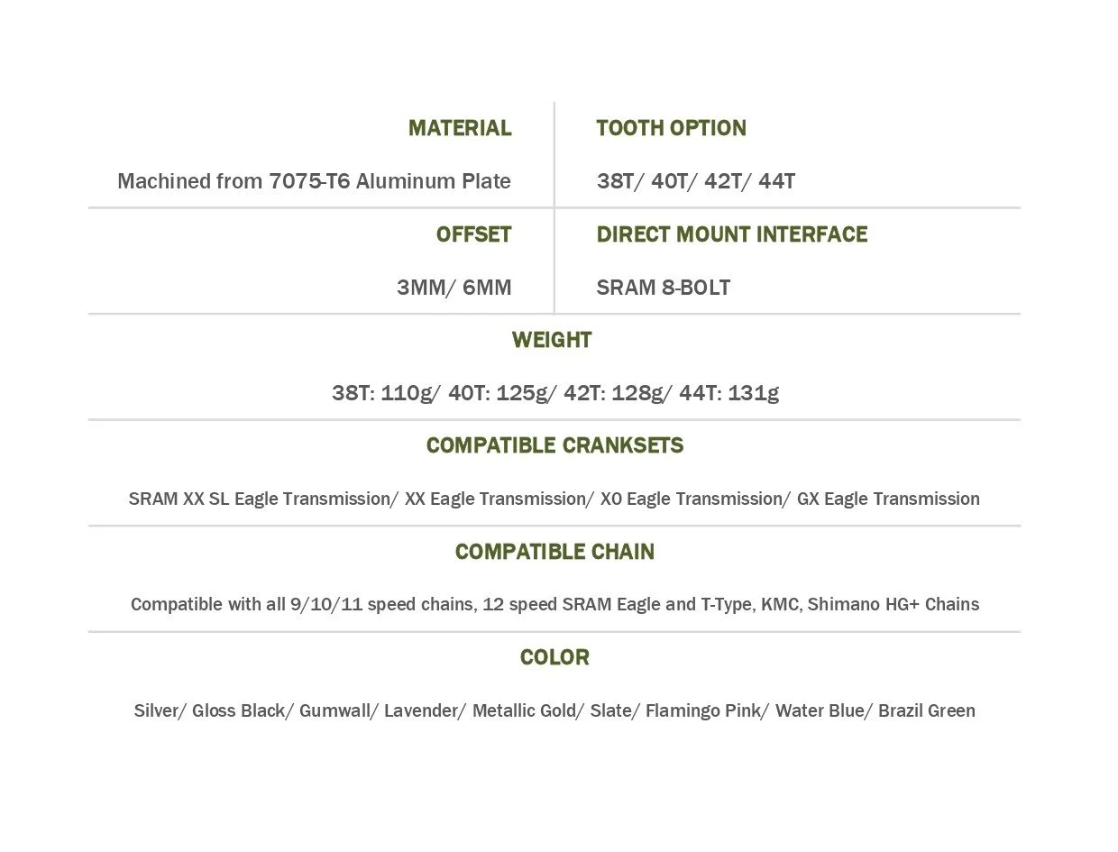 ROLLCii V.2 1X DIRECT MOUNT GRAVEL CHAINRING ( SRAM 8-BOLT, 6MM OFFSET)